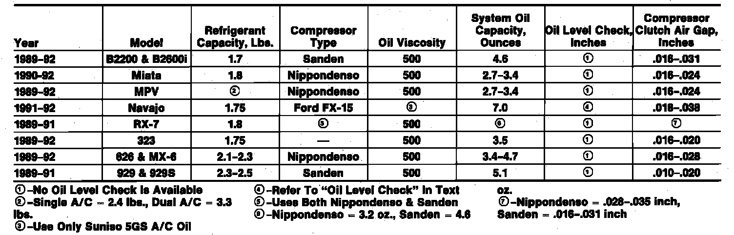 A/C Data Table: