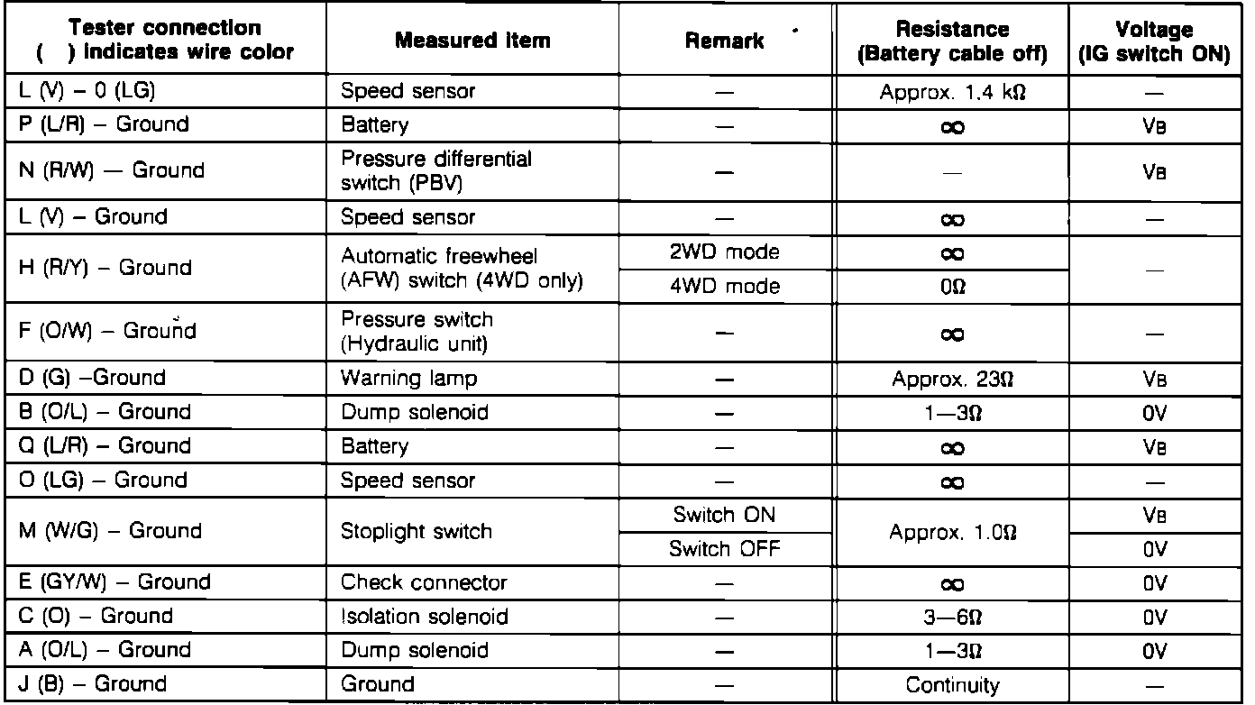 When checking resistance at control unit terminals, always disconnect battery cable.