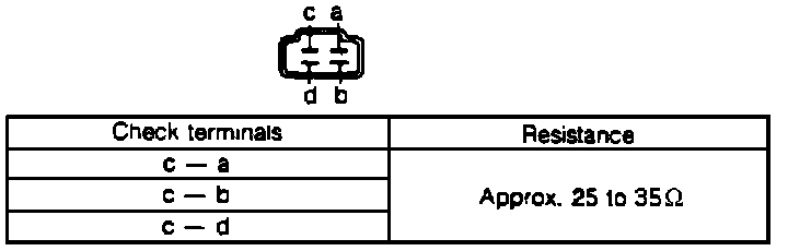 11. Apply battery voltage to terminals shown in and check actuator operation. If not as specified, replace actuator.