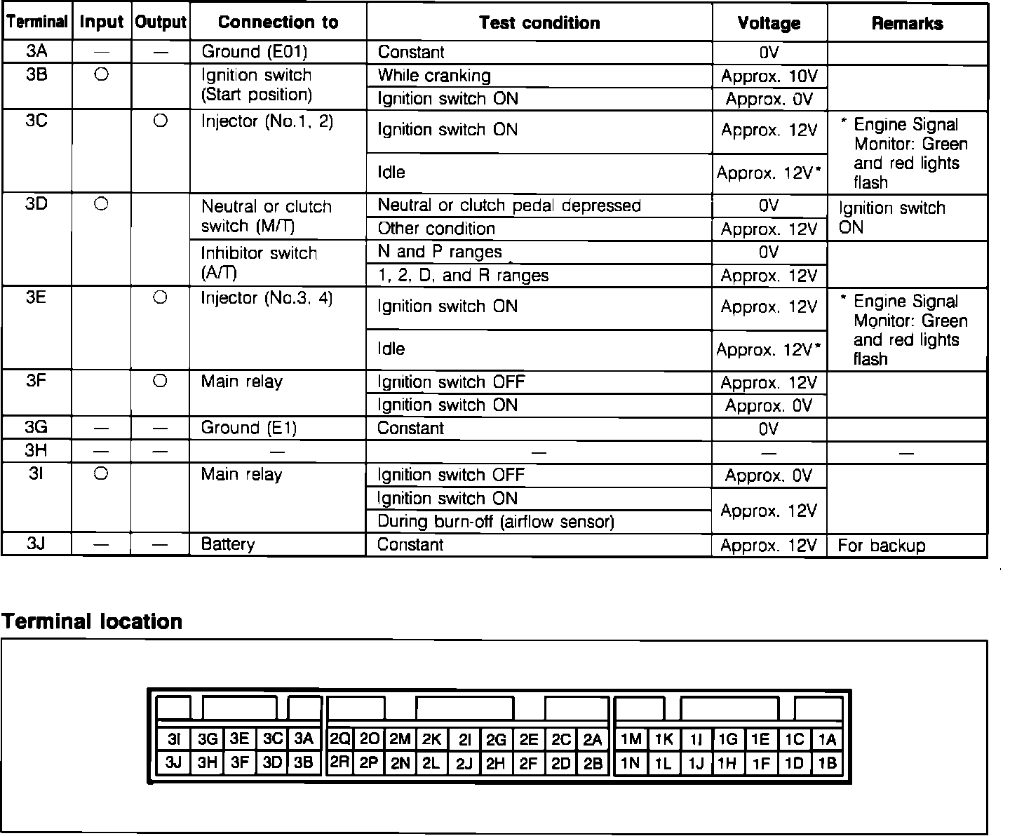 2. Before replacing an ECU, check components, wiring harnesses and terminal contacts if terminal voltage readings are incorrect. Repair as needed and recheck voltage readings.