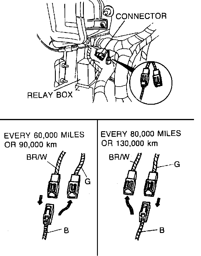 3. At 80,000 mile intervals, return the black wire connector to the brown/white wire connector. Perform scheduled maintenance.