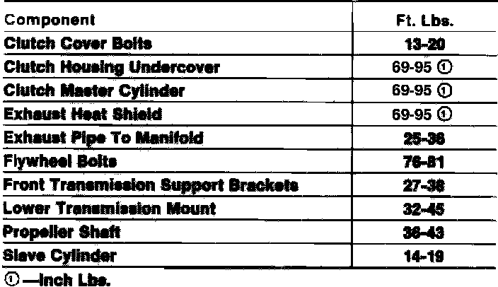 Tightening Specifications: