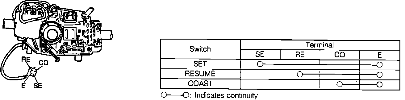 5. Disconnect cruise stop lamp and clutch switches and ensure continuity exists between terminals only with pedal depressed.