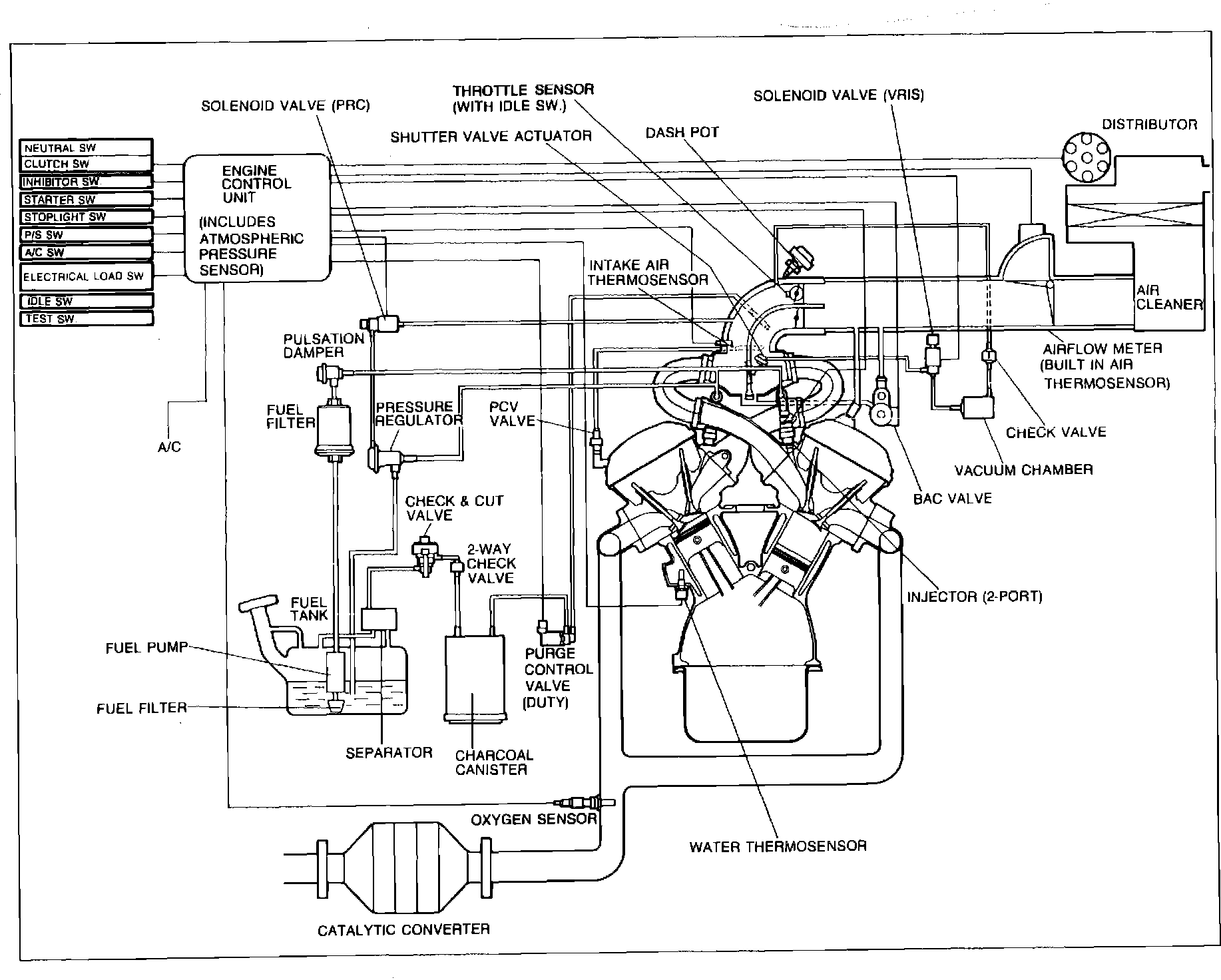 The Feedback System monitors air/fuel ratio by means of the voltage signal from the oxygen sensor. Various problems in addition to a defective oxygen sensor can cause the ECU to detect a malfunction in this system and set a trouble code. Some of these problems include:
