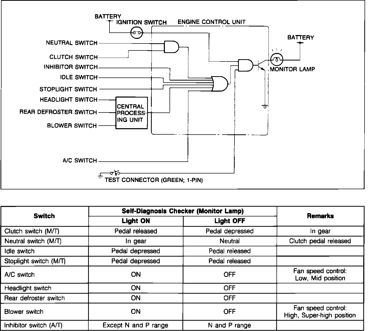 ^ The ECU Switch Monitor Function permits checking individual switches with the Mazda Self-Diagnosis Checker (SST 49 H018 9A1) or a compatible aftermarket "Scan" tool.