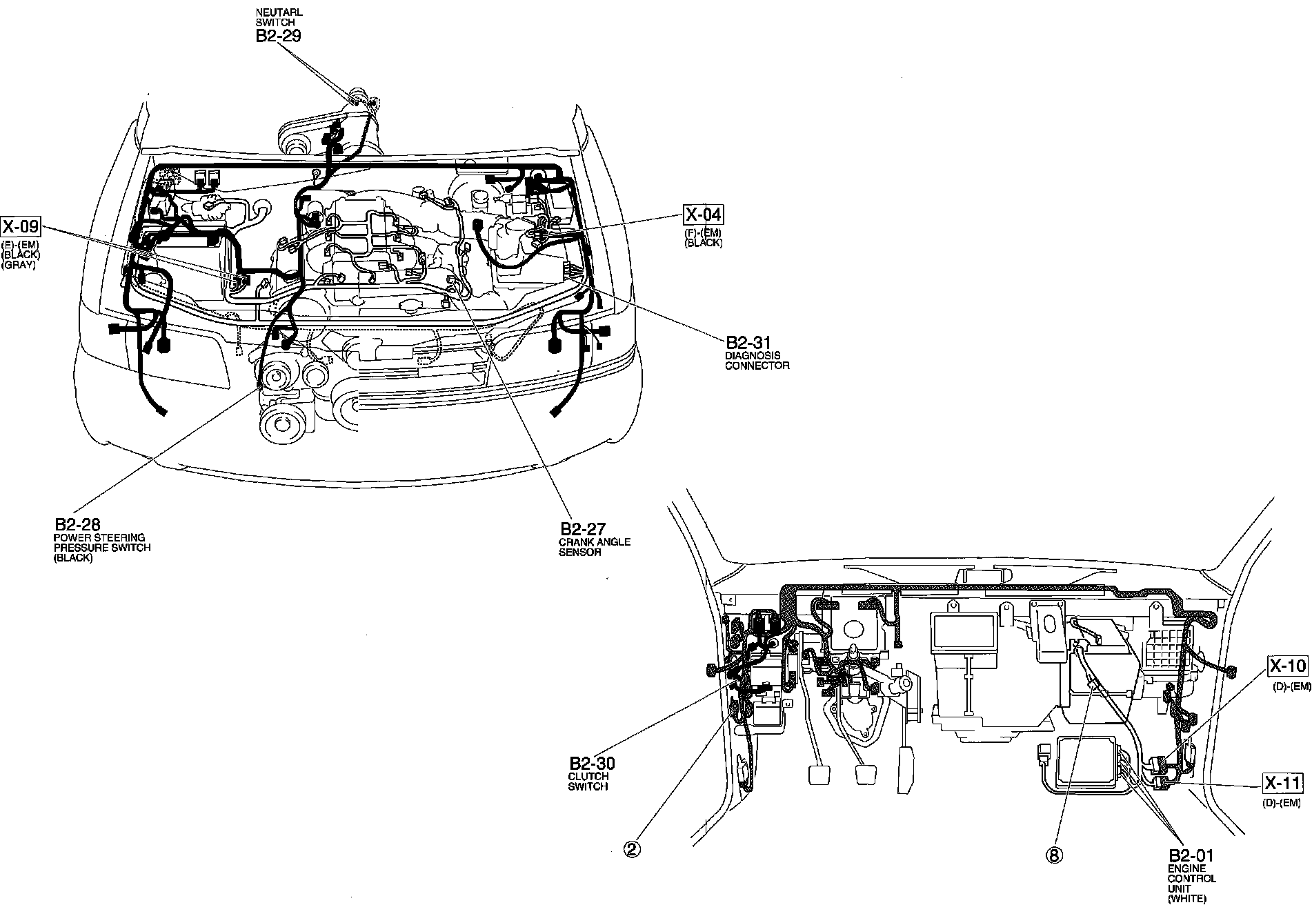 Engine Control System. Harness And Connector Locations: