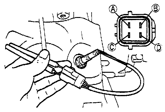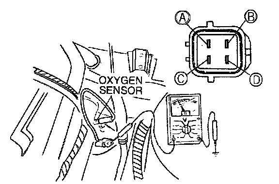 2. Connect an ohmmeter between (D) and (C) terminals (oxygen sensor side) and check for continuity.