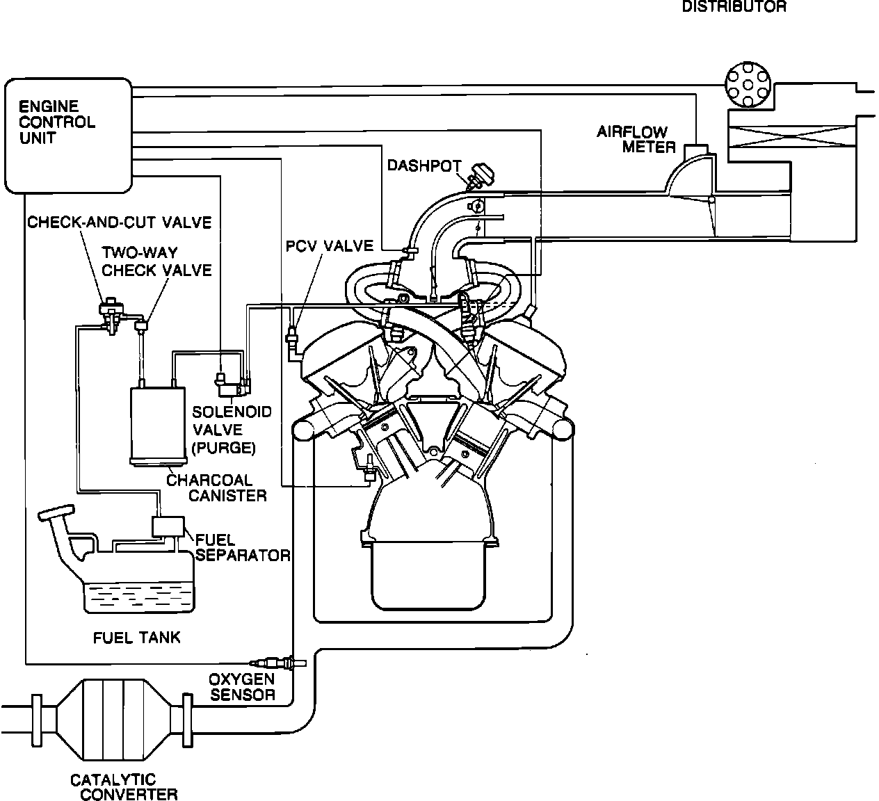 To reduce CO, HC, and NOx emissions, these vehicles use a deceleration control system, electronic fuel injection, evaporative emission control system, positive crankcase ventilation, and three-way catalytic converter.