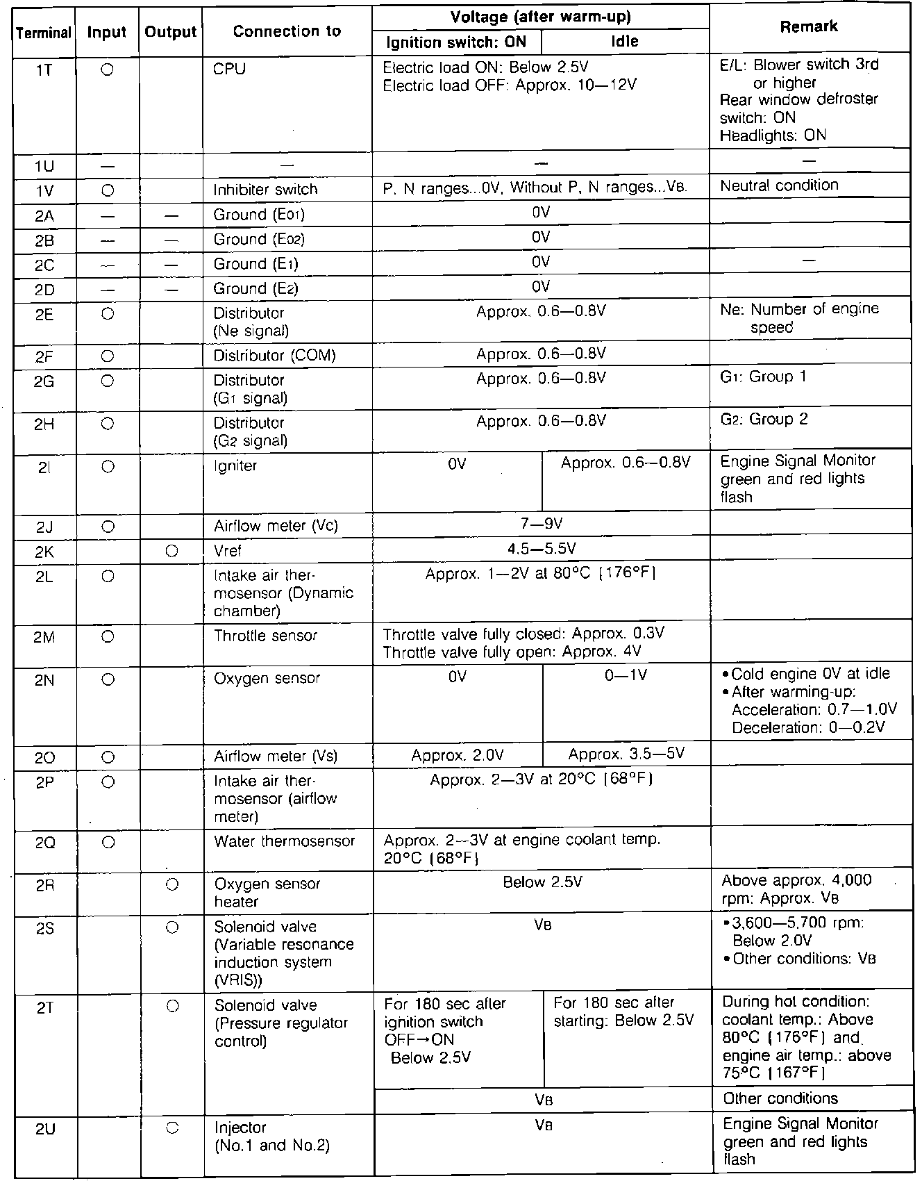 ECU Pin Voltage Chart:
