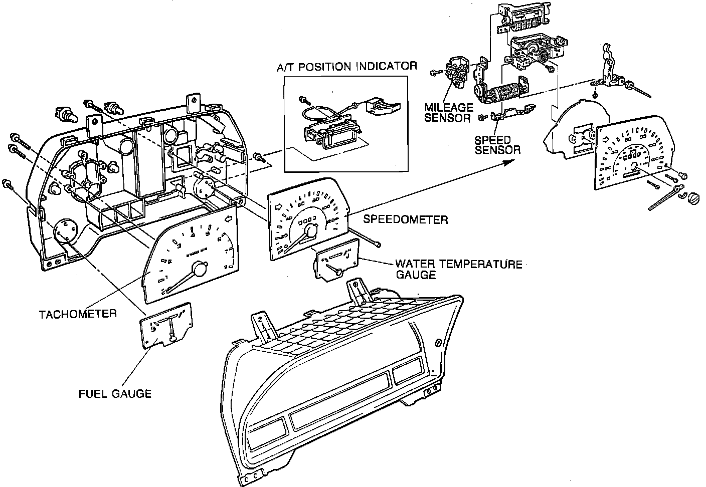 The vehicle speed sensor, located in the speedometer head assembly, consists of a contact set and magnet that turns with the speedometer cable. Magnet movement causes the contacts to alternately open and close four times per cable revolution. The frequency of the on-off signal from the sensor is used to calculate the vehicle road speed, and influences the following outputs: