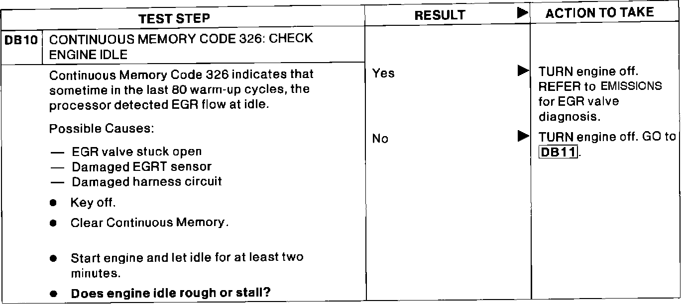 DB10 - Continuous Memory Code 326: Check Engine Idle