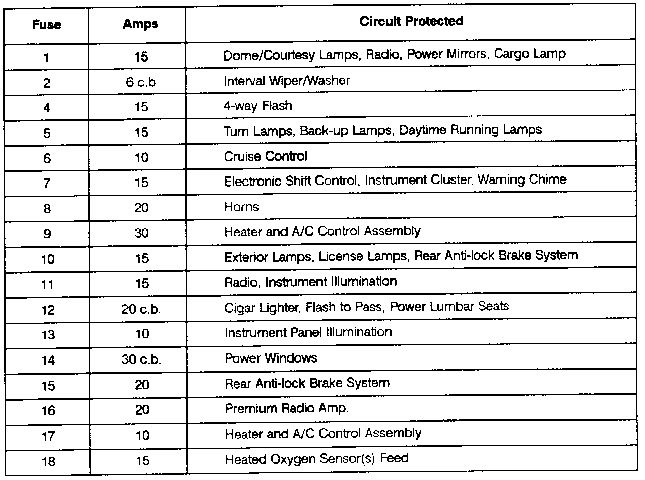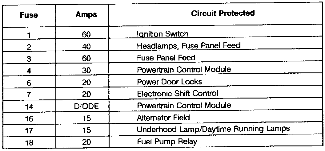 Circuit To Fuse Cross Reference: