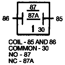 2. Apply battery voltage (B+) to terminal 85, then ground terminal 86. Check for continuity between terminals 30 and 87 of the relay.