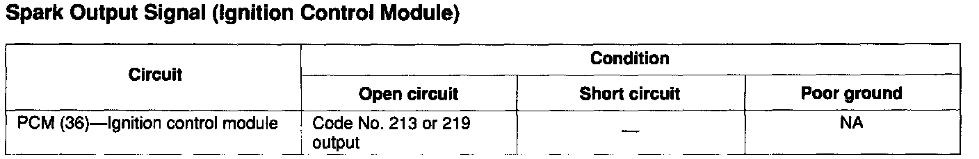 - If the spark output signal circuit has an open, Diagnostic Trouble Code No. 213 or 219 is output and the engine will be at base ignition timing.