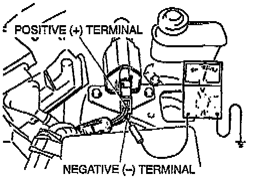 4. If there is no spark, check for voltage at the positive (+) terminal of the ignition coil with the ignition switch at ON position.