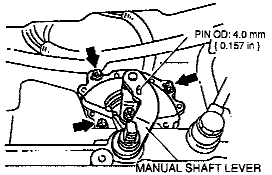 3. Align the holes of the transmission range switch and the manual shaft lever and insert an approx. 4.0 mm ( 0.157 in ) outer diameter pin through the holes.