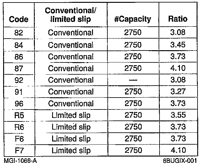 Rear Axle Codes