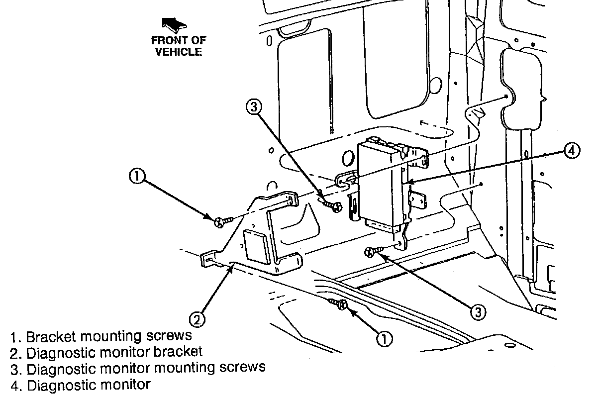 8. Install in reverse order of removal. Tighten diagnostic monitor and bracket retaining screws to: 10.2 - 13.8 N.m (1.1 - 1.3kg fm/8 - 10 lb-ft).