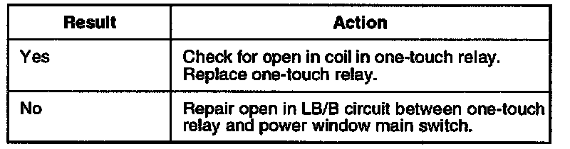 1. Check for open in LB/B circuit between one-touch relay and power window main switch.