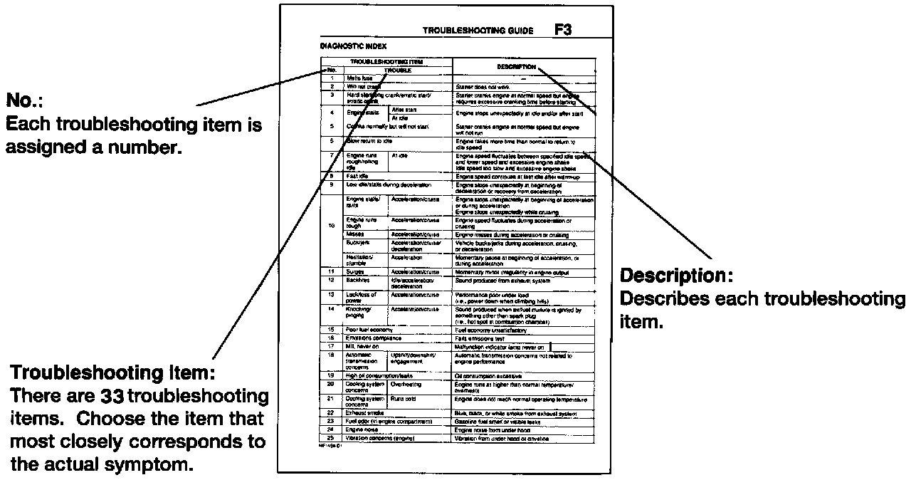 INTRODUCTIONMost of the Fuel and Emission Control Systems are Electronically Controlled, often making it difficult to diagnose problems, especially intermittent problems. Before undertaking actual checks, take a few minutes to talk with the customer who approaches with a driveability complaint. The customer is often a good source of information on such problems, especially the intermittent ones. Through a talk with the customer, you will usually find out what the symptoms are and under what conditions they occur.