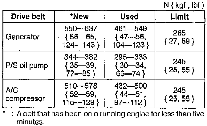Drive Belt Tension Specification Chart: