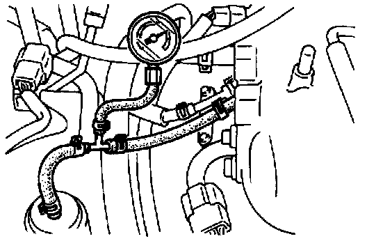 2. Connect a pressure gauge between the fuel filter (high-pressure side) and the fuel distributor.