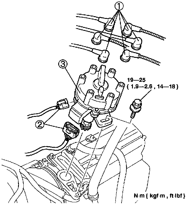 Verify that the No.1 cylinder is at top dead center and align the distributor matching marks. After installing the distributor, adjust the ignition timing.