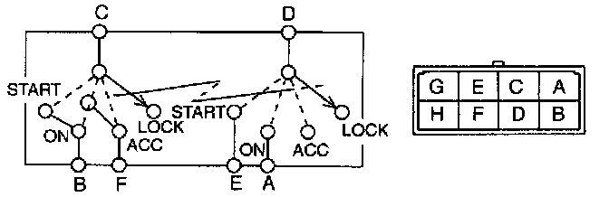5. Check for continuity between the ignition switch terminals by using an ohmmeter.