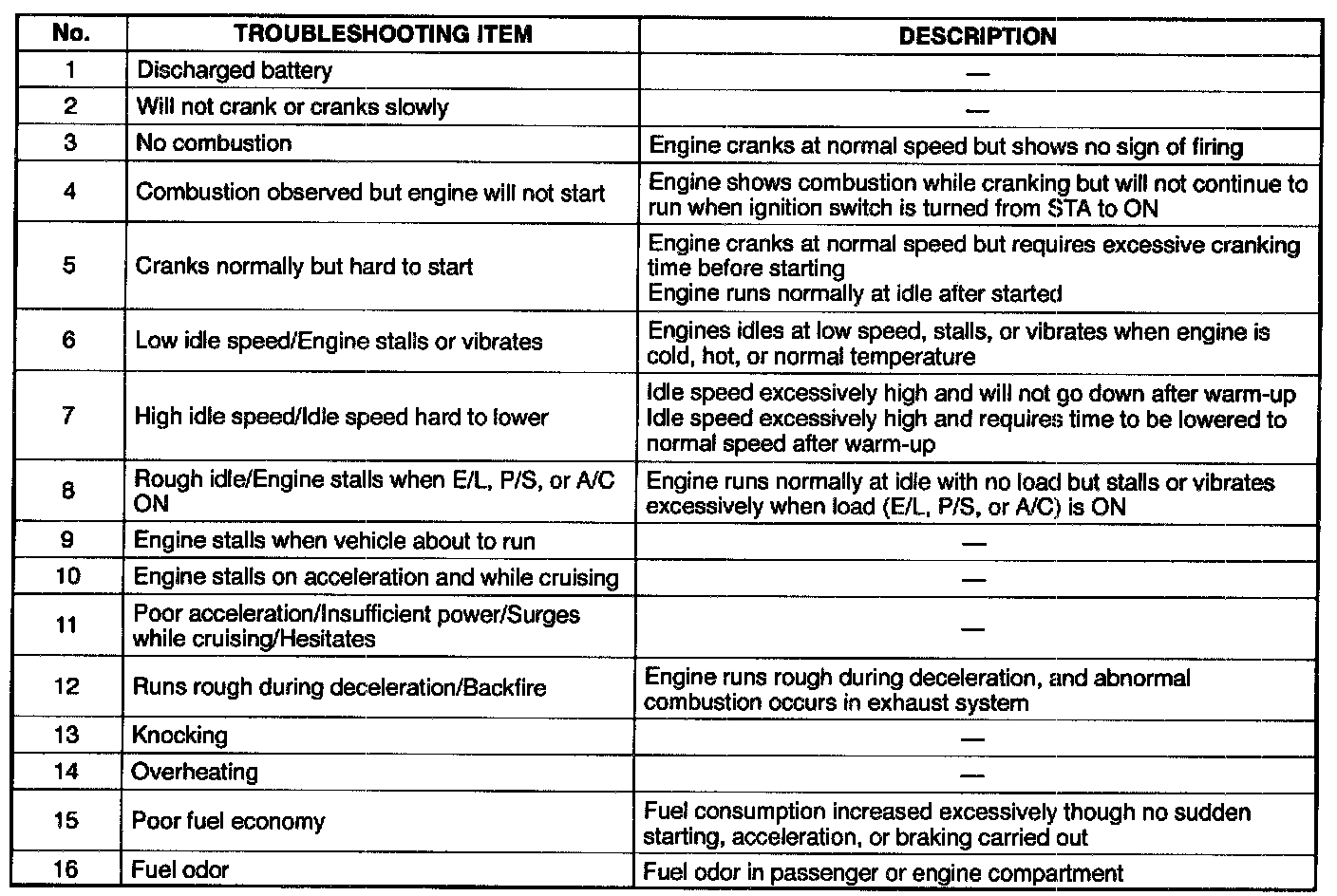 Confirm Trouble Symptom By Using The Following Diagnostic Index,