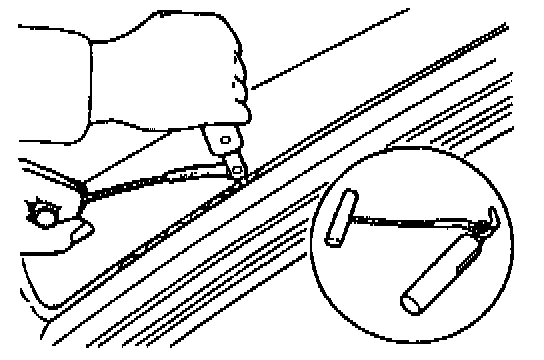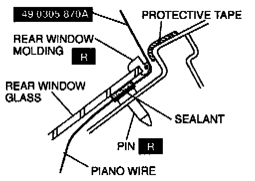 6. Make a hole through the sealant between the rear window glass and the pins from the inside of the vehicle by using an awl.