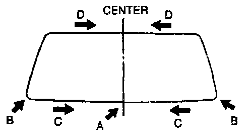 7. Apply an 11 mm {0.43 in} high bead of sealant around the circumference of the glass as shown. Keep the bead of sealant smooth and even, reshaping it where necessary by using a spatula.