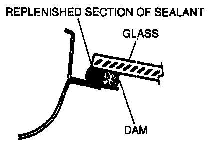 3. Securely bond a dam to the glass 11.5 mm {0.45 in} from the edge. Allow it dry completely.