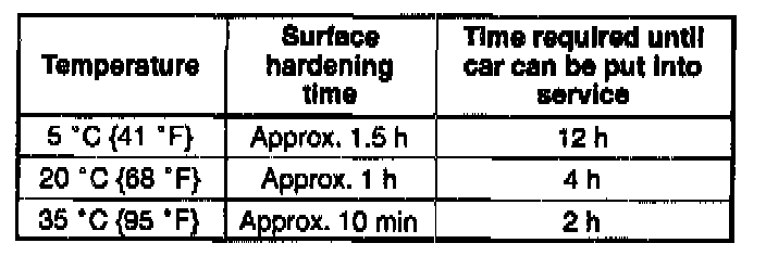 1. Cut away the old sealant by using a razor knife so that 1 - 2 mm {0.04 - 0.07 in} thickness of sealant remains around the circumference of the frame. If all the sealant has come off in any one place, apply some primer after degreasing, and allow it 30 minutes to dry. Then put on new sealant to create a 2 mm {0.08 in} layer.