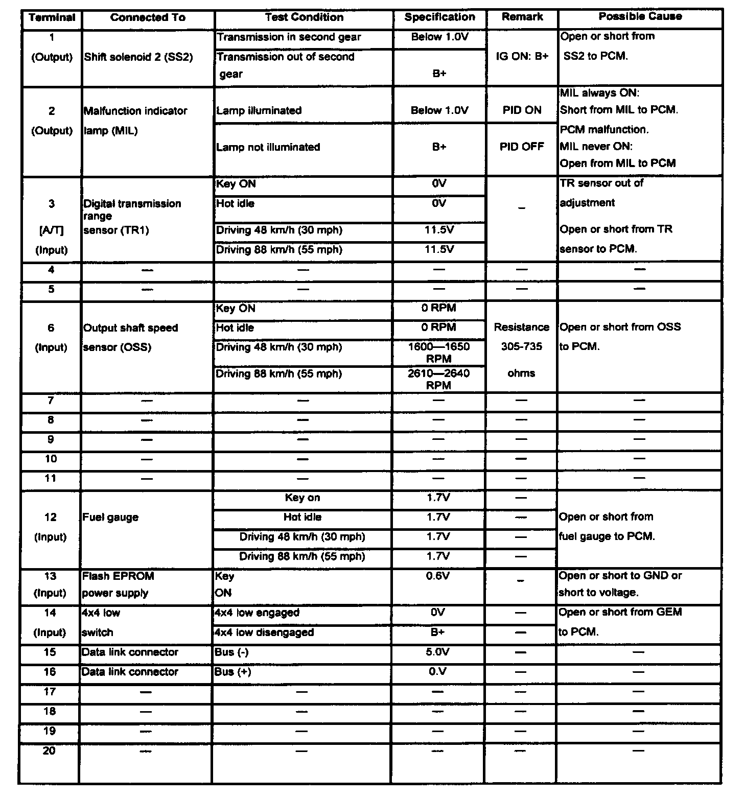 TERMINALS 1 THRU 20: