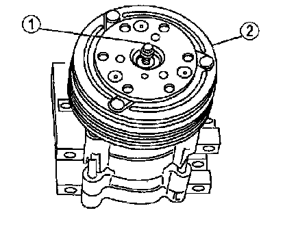 1. Thread an 8 x 1.25 mm bolt into the A/C clutch to force it from the compressor shaft.