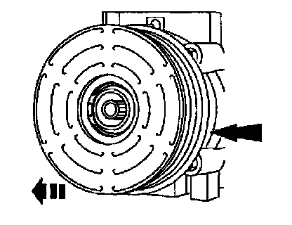 4. Use a 2-jaw Puller to install the A/C clutch field coil until bottomed completely against the A/C compressor.
