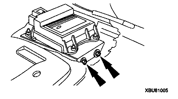 3. Remove the two bolts retaining the air bag diagnostic monitor bracket.