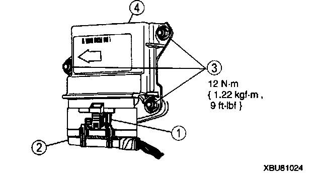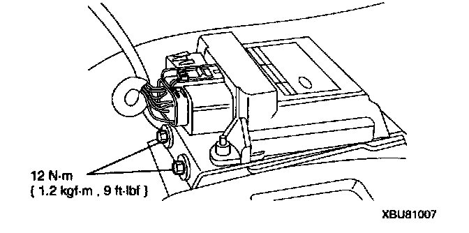 WARNING:- Air bag diagnostic monitor orientation is critical for correct system operation. If a vehicle equipped with an air bag system has been involved In a collision in which the center tunnel area has been damaged, Inspect the mounting and bracket for deformation. If damaged, the air bag diagnostic monitor must be replaced whether or not the air bags have deployed. In addition, make sure the area of the air bag diagnostic monitor mounting is restored to its original condition.