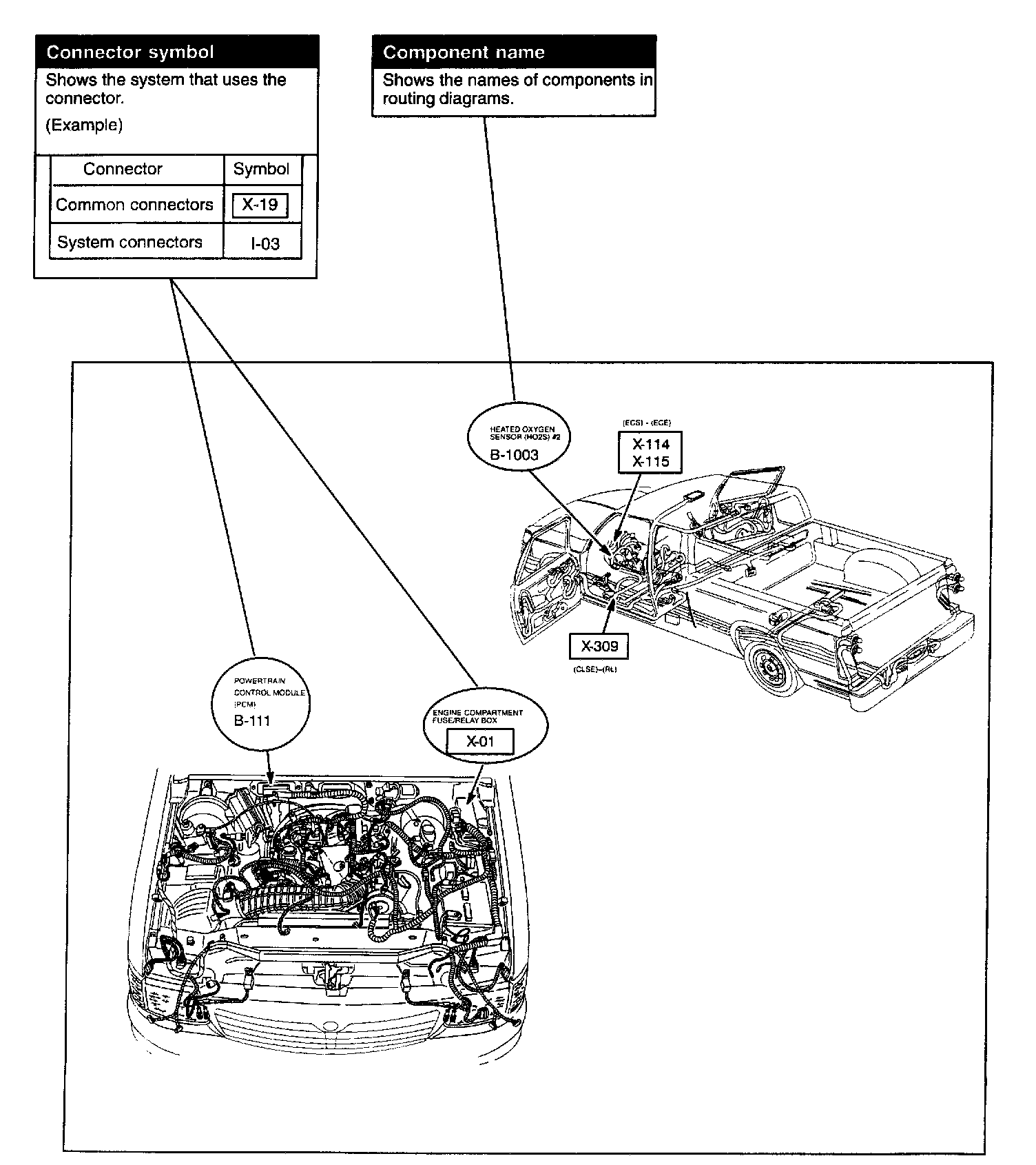 The routing diagram shows where electrical components are on the system circuit diagram by call out line and connector symbols.