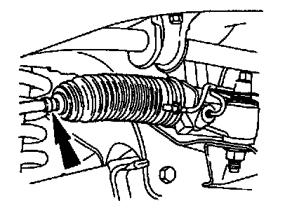 Note: Do not allow the steering gear bellows to twist when the front wheel spindle tie rod is rotated.