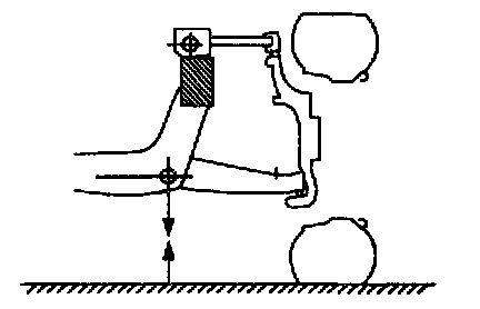 3. Measure the distance between the front suspension lower arm bushing center bolt and the runway lift.