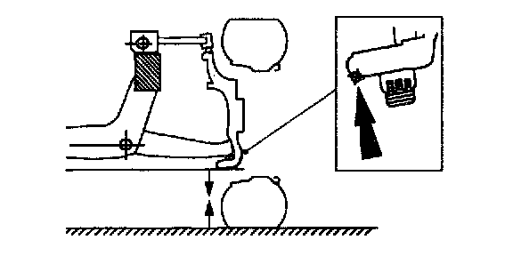 4. Measure the distance between the front suspension lower arm (lowest point) and the runway lift. Record the measurement.
