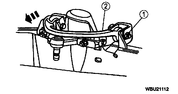 Note: A pry bar can be used between the front suspension arm bushing joint and the frame pocket to aid in moving the arm.