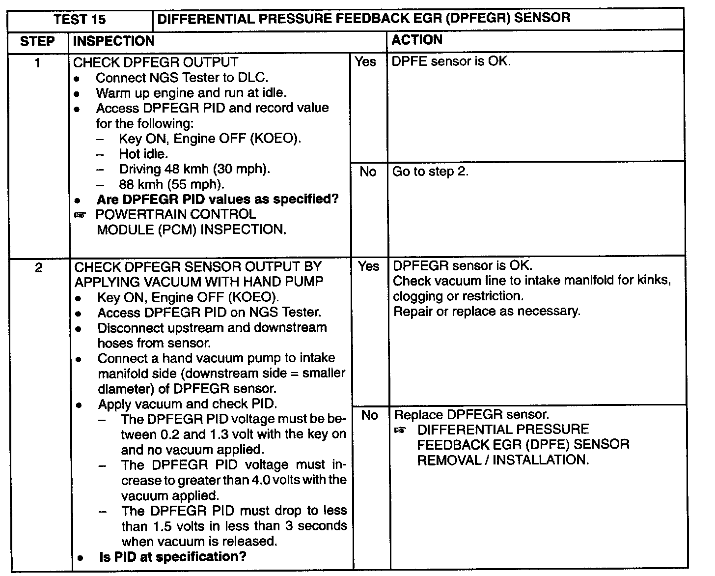 Test 15: Differential Pressure Feedback EGR (DPFEGR) Sensor