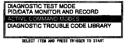 4. Move the cursor to ACTIVE COMMAND MODES. Press the trigger key to enter this selection.