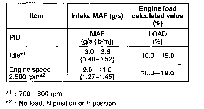 - If not as specified, perform the "MAF Sensor Circuit Open/Short Inspection"