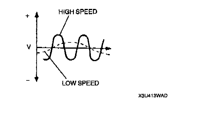 3. Using an oscilloscope, inspect voltage pattern for distortion and noise by rotating each wheel.