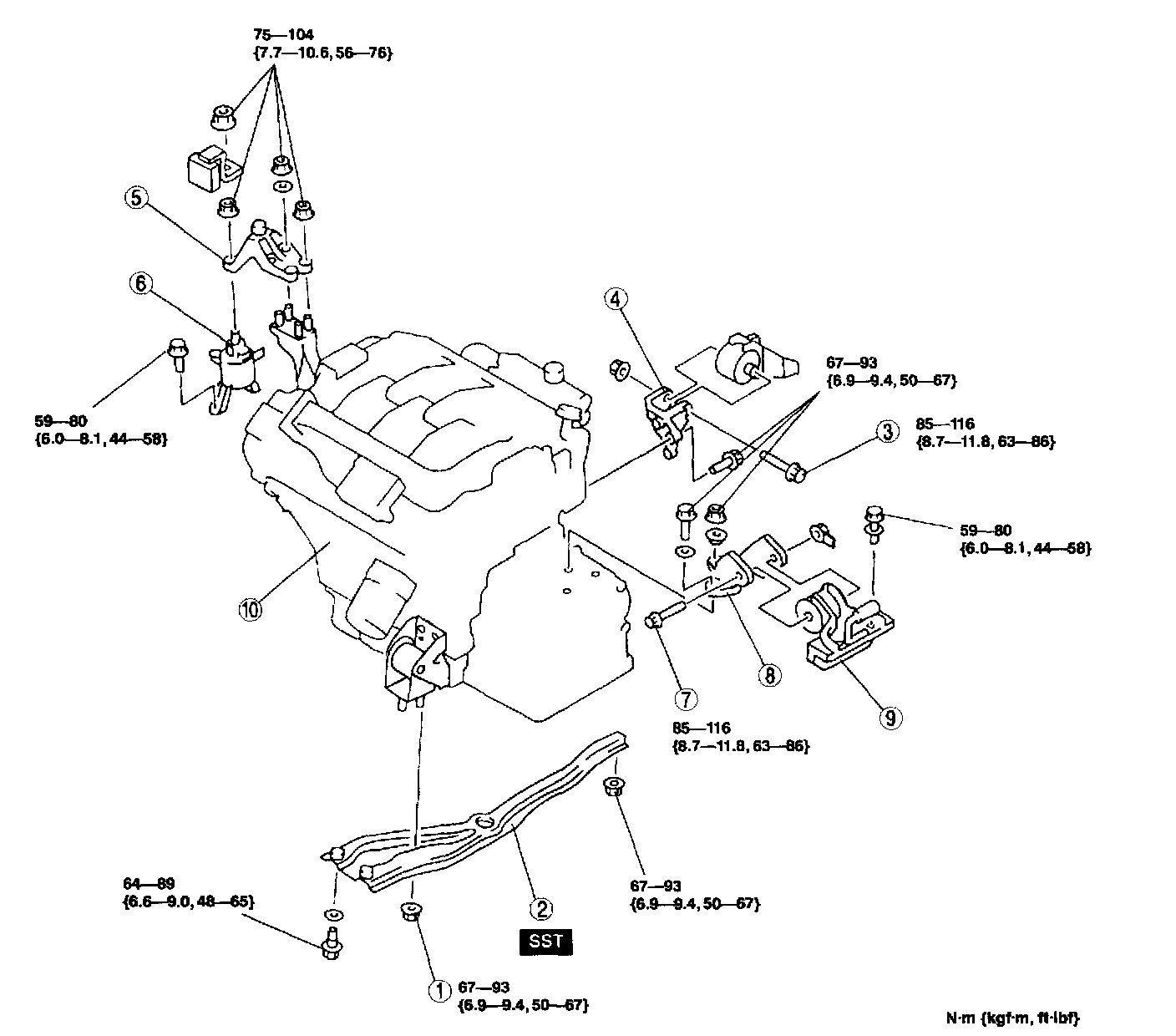 Tightening torque: 85 - 116 Nm (8.7 - 11.8 kgf-m, 63 - 86 lbs.)