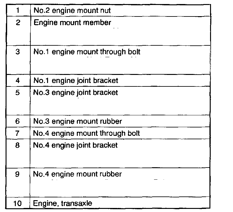 1. No. 3 engine mount center nut is not necessary to be installed at this time. Tighten this bolt after adjusting the engine position.