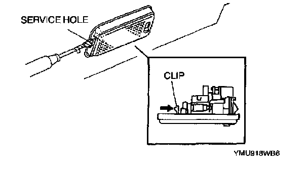 1. Insert a tape-wrapped flathead screwdriver into the service hole.